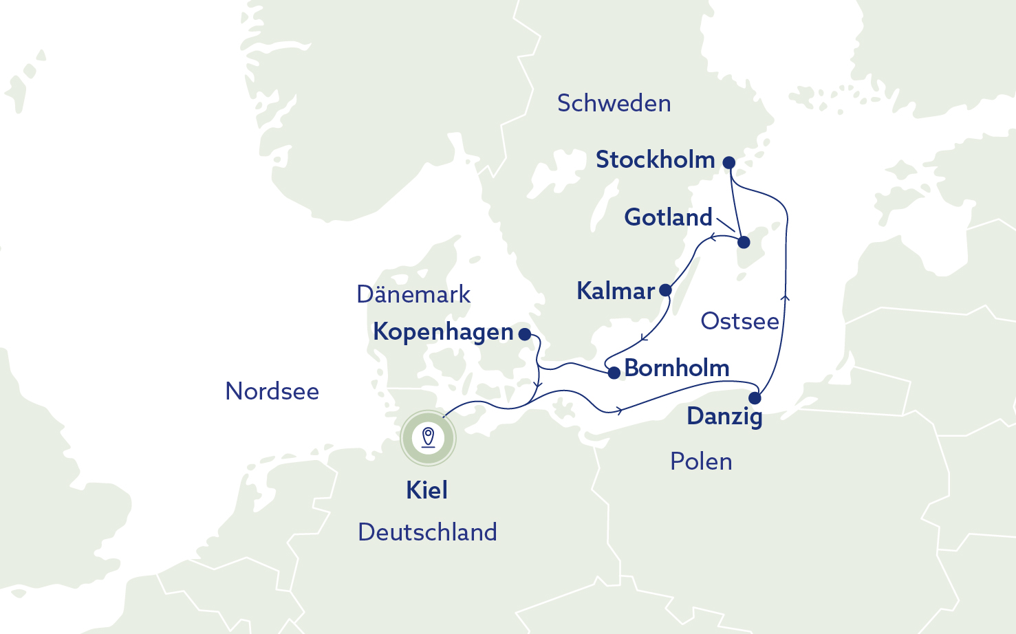 Entdecke Küstenträume mit strahlend schneeweißen Sandstränden auf der zauberhaften dänischen Insel Bornholm, lass Dich von der geschichtsträchtigen Hansestadt Danzig begeistern, erlebe die royalen Hauptstädte Stockholm und Kopenhagen und genieße die schwedischen Schmuckstücke Kalmar und Visby. Erlebe eine abwechslungsreiche Mischung aus großen Städten, kleinen Städtchen und atemberaubenden Landschaften.